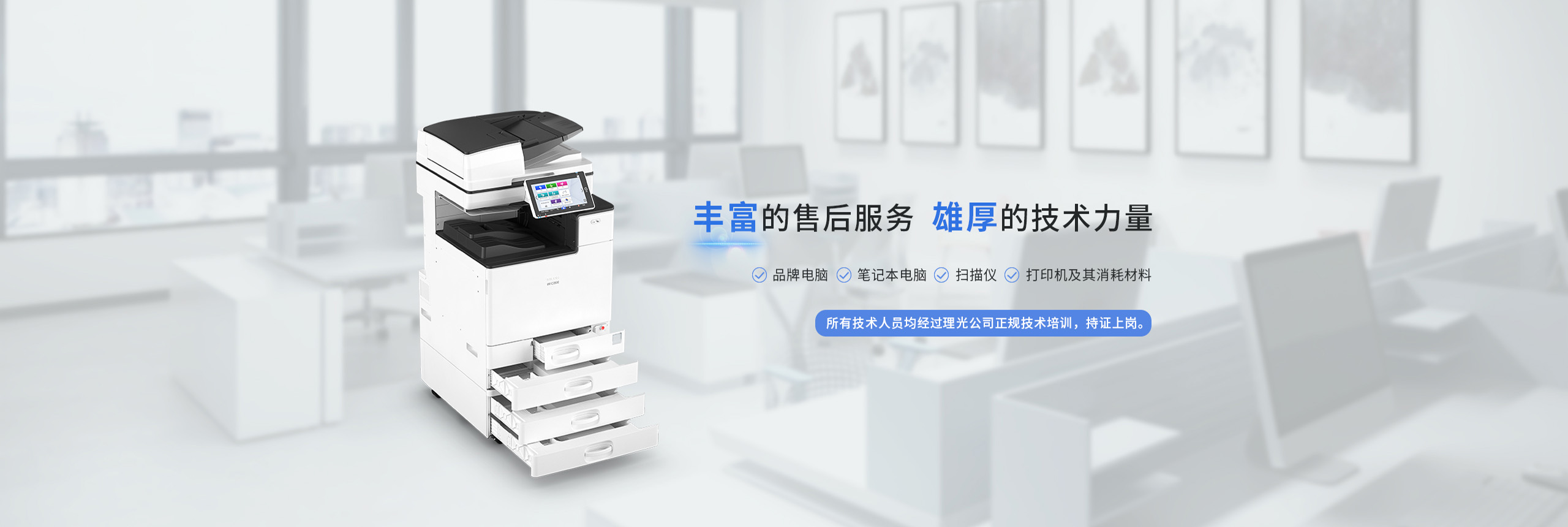 400 8765 990合肥函竺贸易有限公司是一家专注于办公自动化设备销售与服务的企业,自成立以来始终致力于为客户提供高品质的办公解决方案。公司主营业务涵盖理光系列复印机、传真机及其零配件和消耗材料的专业销售,同时兼营多种品牌的电脑产品、笔记本电脑、扫描仪、打印机及相应耗材,构建起全面的产品体系,满足企业日常办公的多元化需求。在理光产品线方面,公司作为该品牌在区域市场的重要合作伙伴,不仅提供全系列新型设备,还注重原厂配件与耗材的供应保障。我们深知设备稳定性对客户工作效率的影响,因此建立了严格的供应链管理系统,确保所有理光产品均为正品渠道供货,使客户用得放心。除了优质的产品资源,...